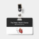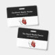 Classy medical name badges template for a Cardiologist in a heart care centre, hospital, or emergency room. Created with a simple modern two side design with name space for your company name and medical staff designed with a heart symbol and stethoscope. Presented with the clip attachment but also available with lanyards. A budget friendly style.