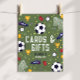 This modern soccer-themed kids’ birthday cards and gifts sign features a vibrant green design with playful illustrations of a football (soccer ball), trophies, stars, goals, and soccer boots. Easily personalize the poster as needed —perfect for signing guests to your favor table.
