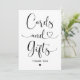 Cards and Gifts wedding sign features modern calligraphy script with heart accents and a simple thank you message for your wedding guests. Black and white colours can be modified.