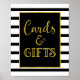 Cards and gifts wedding or baby shower sign poster in classic black and white stripes pattern with glamorous vintage gold text.