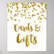 Cards and gifts wedding or baby shower sign poster in white and gold confetti pattern with handwritten style lettering.