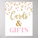 Cards and gifts wedding or baby shower sign poster in light pink and gold confetti pattern with handwritten style lettering.