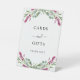 White elegant background, decorated with pink lavender florals, flowers and eucalyptus greenery. Text: Cards and Gifts, Thank You!