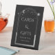 Cards & Gifts Mystical Black Silver Sun Moon Stars Astronomy Celestial Cosmic Galaxy Space Wedding Event Pedestal Sign features a silver sun, moon and stars frame on a black background. Inside is your text. Designed for you by ©2022 Evco Studio www.zazzle.com/store/evcostudio