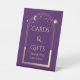 Cards & Gifts Mystical Purple Gold Sun Moon Stars Astronomy Celestial Cosmic Galaxy Space Wedding Event Pedestal Sign features a gold sun, moon and stars frame on a purple background. Inside is your text. Designed for you by ©2022 Evco Studio www.zazzle.com/store/evcostudio