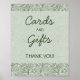 Direct guests with this elegant Cards & Gifts bridal shower poster from the Her Next Chapter book-theme collection. Designed in a soft sage green palette with delicate floral ornaments, it features a warm handwritten-style font and a layout that looks beautiful framed for a polished display. Perfect for book-themed bridal showers, literary celebrations, and thoughtfully styled gift tables.