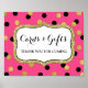 Cards and gifts sign poster for baby shower, bridal shower, or wedding in fuchsia hot pink with gold and black dots pattern, please note gold is photographic effect only.