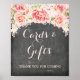Cards and gifts sign poster for baby shower, bridal shower, or wedding in chalkboard pattern with light blush pink vintage watercolor flowers. Perfect for a baby shower, wedding, or bridal shower.