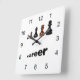 A line of five chess pawns of different sizes from the smallest to the left to the largest to the right as a symbol of business career growth. Customisable funny wall clock. You can change images and you can change or delete the template texts.