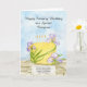 Brighten a caregiver's February birthday with this cheerful floral greeting card, showcasing a softly painted yellow cake topped with graceful iris blooms against a subtle stone-inspired background. Created to celebrate friendship, kindness, and joyful moments together, this watercolor birthday design offers a lovely way to share smiles and warm wishes on their special day.