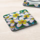 A stylised and vibrant composition of beautiful frangipani flowers by popular artist Lisa Lorenz now on stylish cork coasters