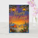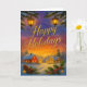 Celebrate the season with timeless winter charm! This 'Happy Holidays' greeting card features a cozy snowy village at sunset, with warm lights glowing from houses nestled among frosted trees. Lanterns hanging from pine branches cast a gentle glow, while pinecones, holly berries, and golden stars frame the scene. The elegant gold script 'Happy Holidays' completes the design, evoking warmth, joy, and festive cheer.