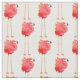 Original fine art design of little Caribbean pink flaming birds by artist and designer Carolyn McFann of Two Purring Cats Studio printed on quality and customisable fabric for tropical wildlife fans.
