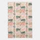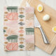 Caribbean Tribal Mudcloth: Boho Dark Green, Pink Tea Towel