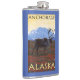 Caribou Scene - Anchorage, Alaska Hip Flask