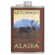 Caribou Scene - Ketchikan, Alaska Hip Flask