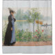 Beautiful Carl Larsson Karin by the Lake vintage watercolor painting of a Lady walking along a lake with Flowers along the water and a man in a rowboat with a dog is on this Shower Curtain. Image is public domain due to expired copyright.