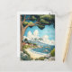 This travel postcard, in modern digital illustration style, showcases the western U.S. shoreline with a sample from Carmel, California.