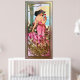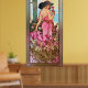 Carnation is a beautiful art nouveau portrait of a young lady dressed in a pink flowing bear shoulder and open back gown with a gold belt wrapped around her waist.