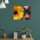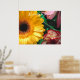 Botanical themed Poster featuring a photo of colourful bunch of flowers: yellow gerbera and striped white red carnations symbolising devotion, love and fascination. Glamourous optimistic design. Stylish gift for any special occasion (Saint Valentine's Day, Mother's day, Grandparents Day, birthday), glamourous accent to your home decor. You can delete the text "It's going to be sunny" or replace it with your own message (click "Personalise this template").