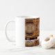 coffee mug with a pattern of carnegie hall and a blank area with phrase "fill in:"