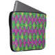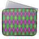 A harlequin pattern of green and purple is transformed into a playful argyle with an overlay of gold diamond outlines and fleur de lis, creating a fun and colourful pattern perfect for any New Orleans influenced Mardi Gras celebration. The pattern is masked behind the silhouette of a fleur de lis to add a fun final note. This sleeve is available in 10", 13", and 15" sizes to fit a variety of laptops, netbooks, and tablets.