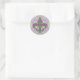 A harlequin pattern of green and purple is transformed into a playful argyle with an overlay of gold diamond outlines and fleur de lis, creating a fun and colourful pattern perfect for any New Orleans influenced Mardi Gras celebration. The pattern is masked behind the silhouette of a fleur de lis to add a fun final note.