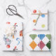 Modern circus carnival birthday wrapping paper sheet for ANY AGE! This wrapping paper showcases cute circus animals, air balloons, sweets, ribbons, festive bunting flags, colourful confetti and much much more.