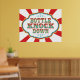Carnival or Circus Bottle Knock Down game sign with red and white stripe.
