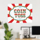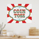 Carnival or Circus Coin Toss game sign with red and white stripe.