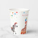 Cute circus carnival paper cup for ANY AGE! This paper cup showcases cute circus animals, air balloons, sweets, ribbons, festive bunting flags, colourful confetti and much much more.