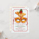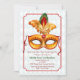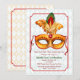 A muted diamond pattern is overlaid with a Mardi Gras mask with feathers and double framed. Festive and cheerful, it's perfect for a Mardi Gras celebration. (FP)