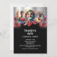 A vibrant, striking and dazzling night scene of a boy wearing a colourful wig and face mask set between two gorgeous ladies wearing colourful fancy dress costumes and wigs. Their makeup is done and they are set for showtime! These watercolor realistic 3D AI graphics are set against a black and faux silver background that makes them pop. Exploding colourful fireworks can be seen on either side of the invitation and editable white templates appear below the graphic which may be personalised to suit your special occasion. This luxurious, elegant and upmarket invite is ideal for a festival, carnival or circus celebration whether it be a retirement, birthday, halloween or a sit down dinner party. This is suited to both teens and adults