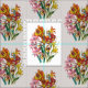 Old-fashioned botanical illustration of gladioli in yellow, pink and red