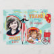 Sweet and fun carnival theme thank you card with 2 photo inserts. In yellow, red, blues.
