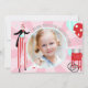 Sweet and fun carnival theme thank you card with 1 photo insert. In pink, red, blues.