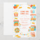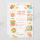 This whimsical circus-inspired design brings a joyful “come one, come all” carnival feel to a baby shower celebration. Featuring a vintage-style big top tent, colorful balloons, festive bunting, and soft cloud details, the artwork feels playful yet polished with a gentle storybook charm. The bright but balanced color palette makes it perfect for a fun, welcoming baby shower that feels cheerful without being overwhelming—ideal for hosts who want something imaginative, lighthearted, and memorable.
