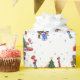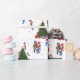 Carolers and Christmas Trees Wrapping Paper design features a pattern of festive carolers surrounding a Christmas tree and pictured against a white background with green and red speckles. Very festive and fun!