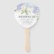 A unique light blue, floral-themed set of hand fans tailored specifically to your future wedding. They feature a greeting on the front and your unique wedding details on the reverse side.