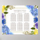 Help your guests to their tables with this matching watercolor beauty from the Carolina Blue Collection.   A summer romantic color, the floral wreath surrounds text and has multiple colors including blue, yellow, shades of purple and green and gold leaves.  A double gold border on white background.