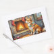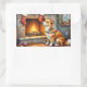 Carolina Dog Fireplace with Christmas Lights Rectangular Sticker