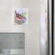 A Carolina wren perches on a branch with summer blooming morning glories in the background on this magnet featuring a pastel artwork. These sweet little birds are native to Eastern North America and are the state bird of South Carolina.