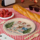 Paper plates with a vintage Christmas scene of children caroling making a great holiday party decoration.