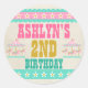 © 2015 Socialite Designs. Vintage horse carousel stickers for a girl's birthday party. Our design incorporates a star border and customisable text in colours of pink, turquoise and gold.