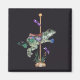 Original watercolor painting by Sandra Taylor Gale, featuring a green frog Carousel figure. This unique frog, one in a series of carousel art, holds a blue ball in his toes and trails water lilies from his saddle. Two purple whimsical dragonflies hover above the plants and the mushrooms beneath the Frog's Carousel base. Makes a great gift for nature lovers or Carousel art collectors, kids, adults or those who just like adorable Frogs.