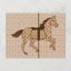 Mixed media digital graphic of a classic carousel horse, in mixed patterns, against an arabesque tiled background - Chocolate browns and tans accented with cream