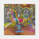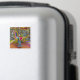 A close up photograph of colourful horses on a merry-go-round printed on a square fridge magnet.