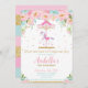 Carousel Unicorn 1st Birthday Pink Mint Floral Invitation