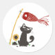 Carp streamer happy cat - Choose background colour Classic Round Sticker