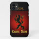 "Carpe Diem" Iphone case with black and red Lion. "Seize the day". Personalise this case with your name or initials. Mythological griffon on red and black background.